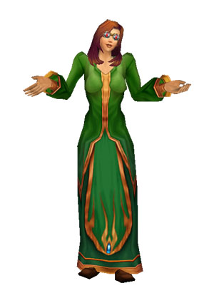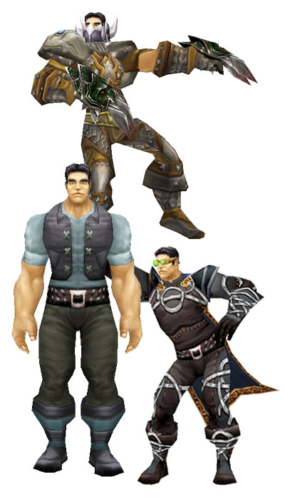 Futureboy goes through three different sets of clothes -- one when he's at school, one when he's imagining himself as a brilliant scientist, and one when he's imagining himself as a cyborg. The cyborg outfit was the toughest to put together; there isn't a lot of cyborg-looking clothing to choose from in a fantasy game like WoW. Futureboy makes a guest appearance in "The Big Boom", watching the disaster unfold on TV with Laura. Futureboy also makes a guest appearance busting a frozen move in the "Nexus a-Go-Go" nightclub in "Dance, Soterios Johnson, Dance".