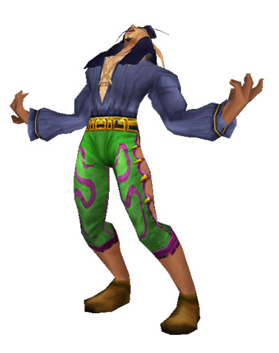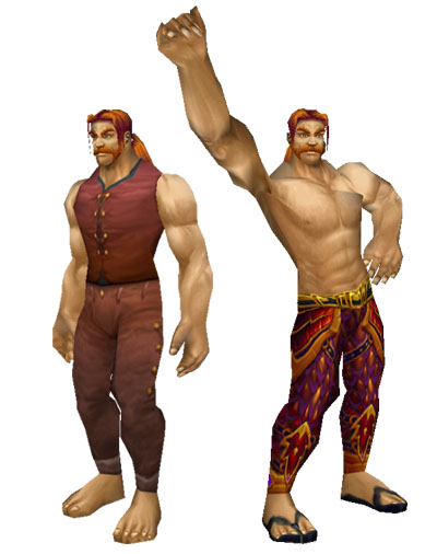 Now, you may not agree that his winning pair of pants is the fanciest in the entire World of Warcraft, but you do have to admit they're fancy. The "before" version of The Winner (pre-fancy pants) makes a guest appearance in "The Big Boom", running into the church to escape the invading zombies.