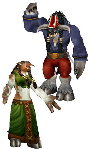 I went back and forth a lot, trying to figure out what would be the funniest race to make the Captain. I settled on him being a Tauren because (a) I've never had a Tauren main character before, and (b) female Taurens have great animations to show frustration, so I knew they'd make a great pair. Who's the main character in this video, the Captain, or the Captain's Wife? I really don't know.