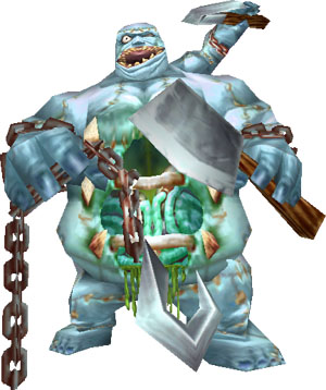 Hardworking henchman and B.F.F. of Dr. Skullcrusher, Scarface isn't really a character in the sense that he's just the "fleshgolem" model from the Model Viewer, and not a playable race. But it didn't feel right to leave him off the page, you know? Scarface can be seen shuffling down the street towards the beginning of "The Big Boom". |